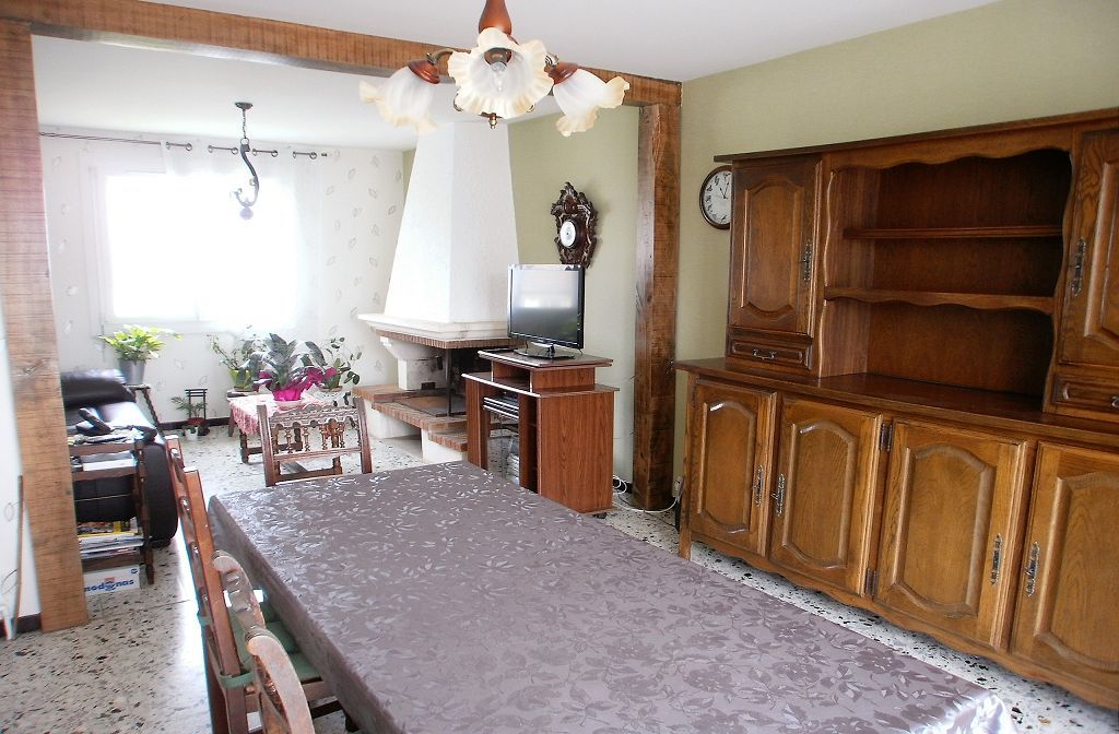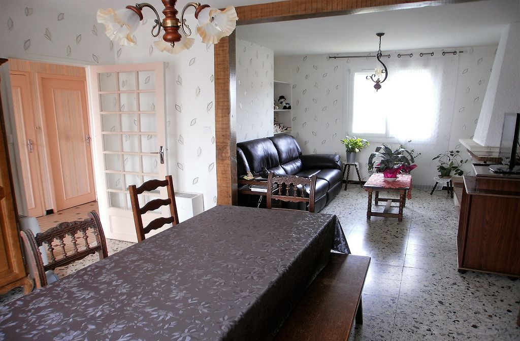 Bourg tous commerces et bus de ville, maison de type F4, 1 chambre au rez-de-chausée avec douche et wc et à l'étage, mezzanine, chambre, cabinet de toilette et wc. Sous-sol total. Le tout sur un terrain de 337 m2.