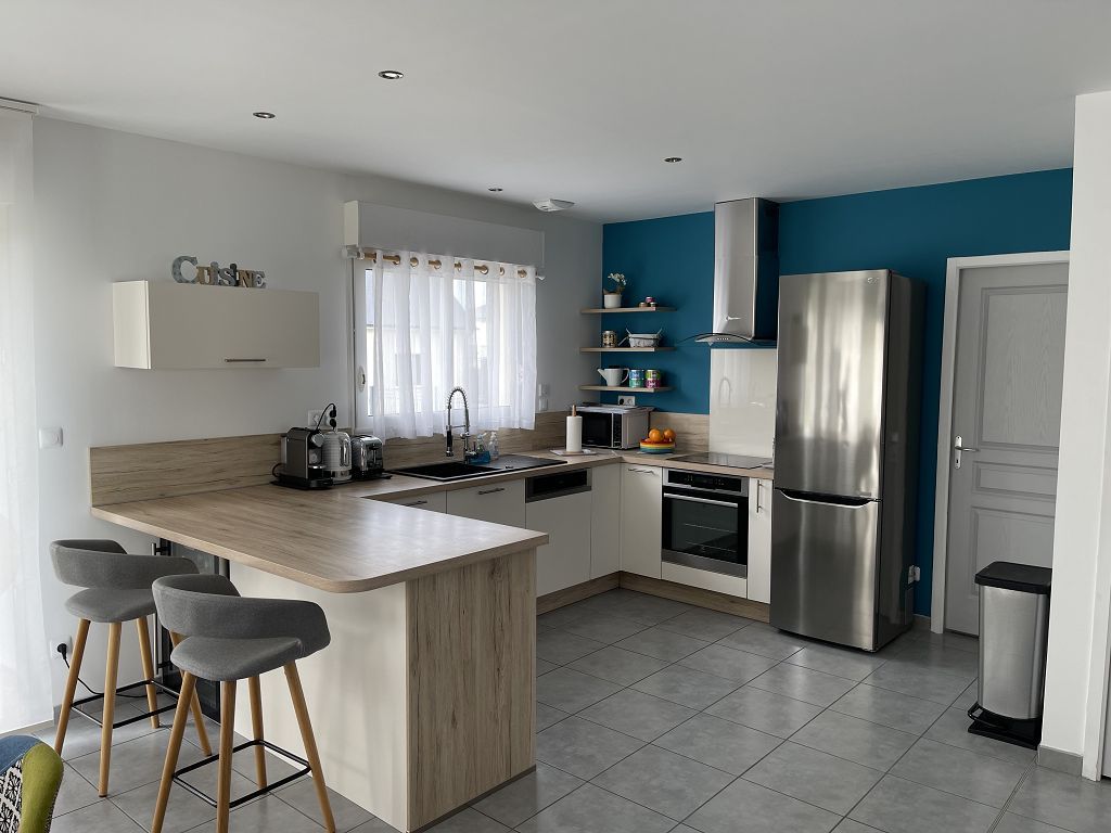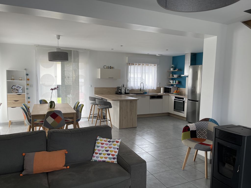 Dans un quartier résidentiel, maison contemporaine de 2017, RT 2012, comprenant un beau séjour-salon de 39 m2, avec poële à granulés, cuisine aménagée et équipée, arrière cuisine et toilettes, à l'étage, palier avec 3 chambres et salle de bains avec toilettes. Également un garage et 2 places de parking. La maison est en excellent état, faible consommation. Elle est située dans un quartier très calme et dans une commune recherchée avec commerces.
