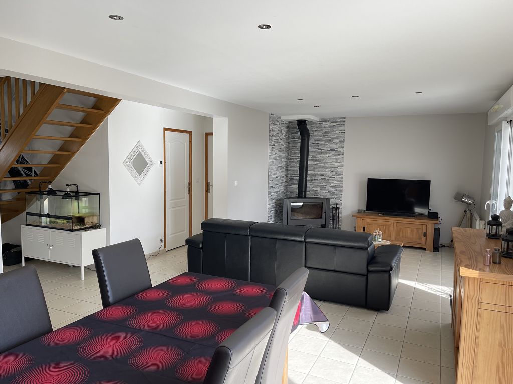 Secteur recherché, quartier résidentiel, maison contemporaine de 2009 parfaitement entretenue comprenant un séjour-salon avec poële à bois, cuisine ouverte aménagée et équipée, arrière cuisine, chambre au rez-de-chaussée avec salle d'eau et wc et à l'étage grande mezzanine, 3 chambres, salle de bains avec douche à l'italienne, baignoire et wc. Grand garage double de 56 m2. Cuve d'eau 3000L. Robot tondeuse. Sur un terrain de 819 m2 entièrement clos.
