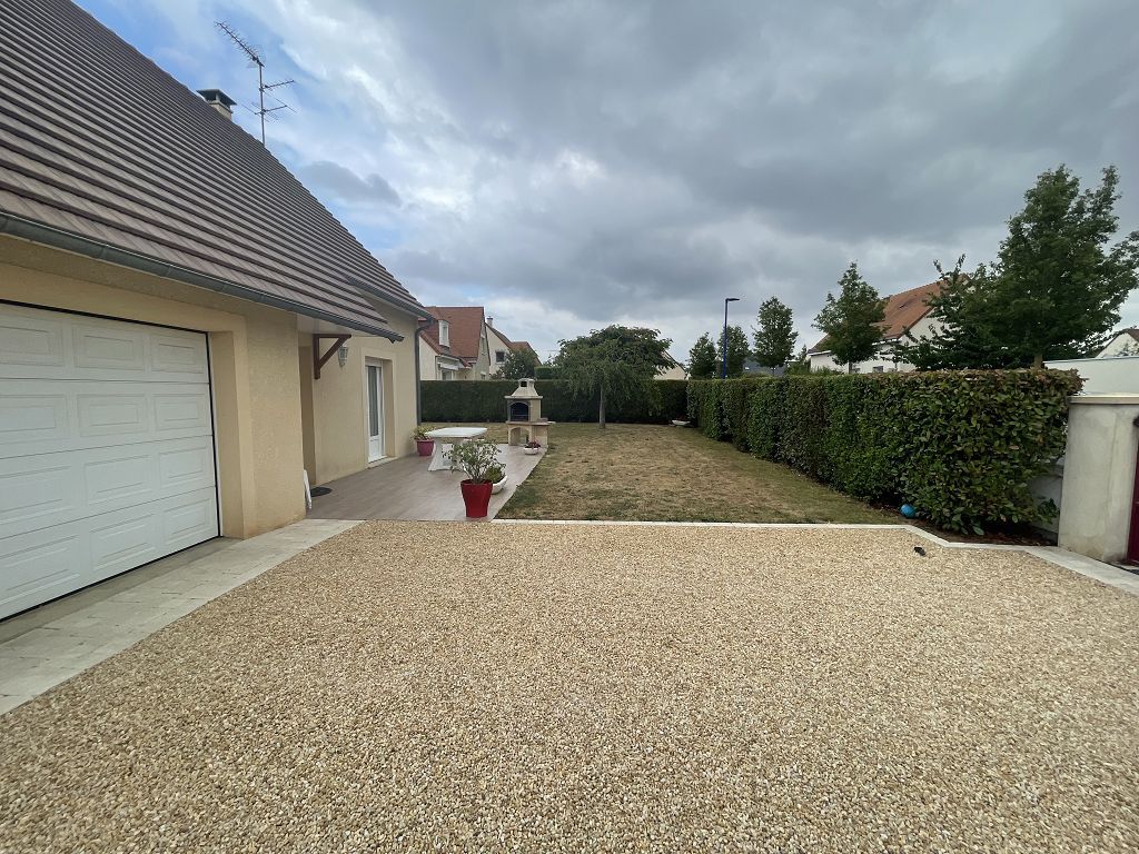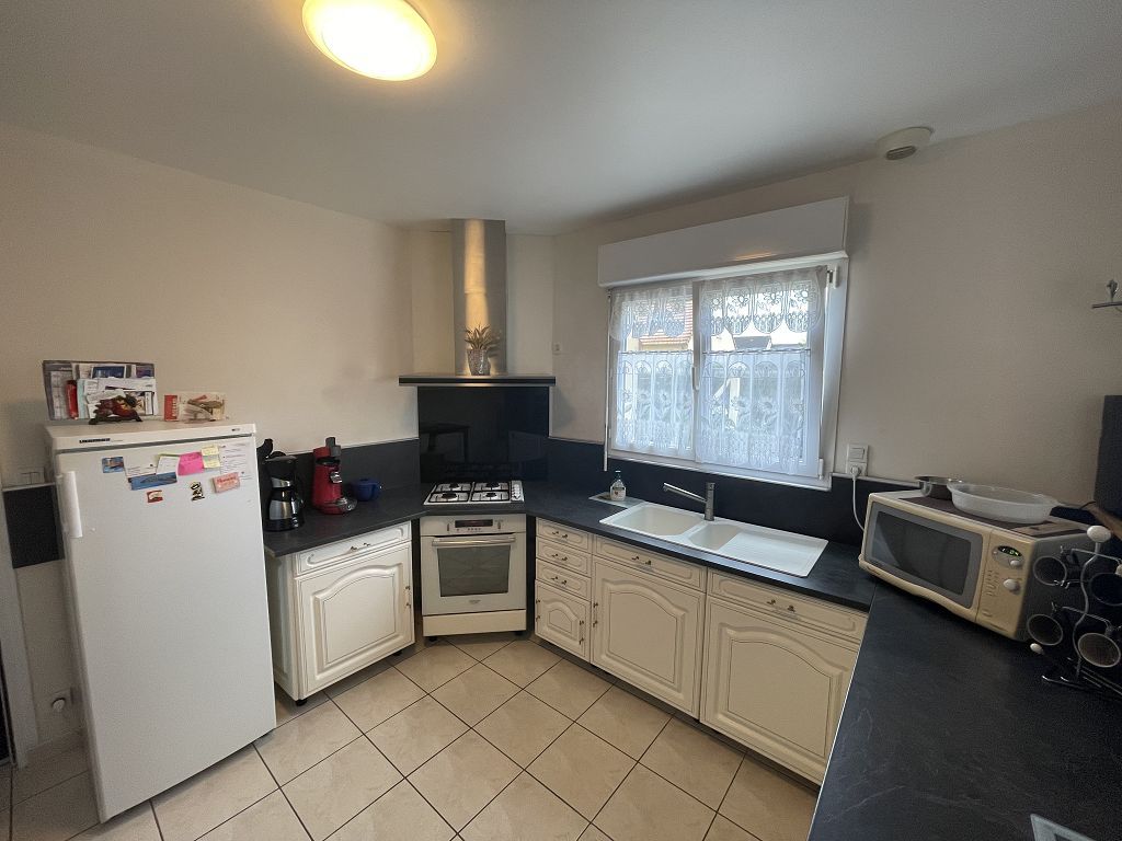 Maison individuelle récente de 2003 comprenant un beau séjour-salon avec poële à granulés, cuisine ouverte aménagée et équipée avec cellier.