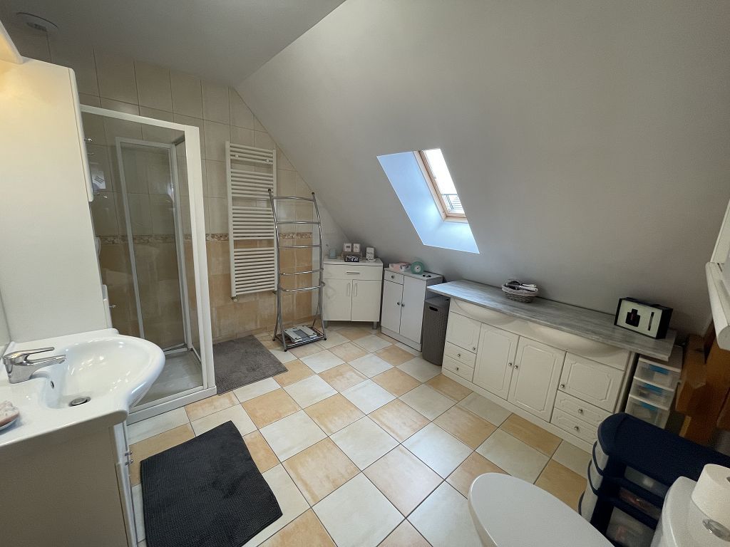 A l'étage trois belles chambres avec salle de d'eau et toilettes. Cette maison en parfait état comprend 2 garages entièrement carrelés. Possibilité d'aménager une chambre et une salle d'eau dans le 1er garage, ce garage fait environ 26 m2. Le 2e garage est assez grand également, environ 35 m2 avec grenier.